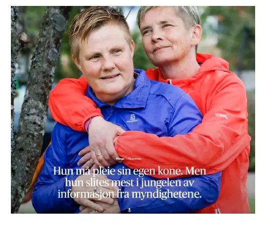 Du kan lese hele artikkelen om Torgunn og hvordan hun må kjempe for å pleie sin ektefelle, med et regelverk som ikke er moderne og oppdatert for nåtidens utfordringer: https://www.aftenposten.no/norge/i/Qy69oP/hun-maa-pleie-sin-egen-kone-men-hun-slites-mest-i-jungelen-av-informasjon-fra-myndighetene